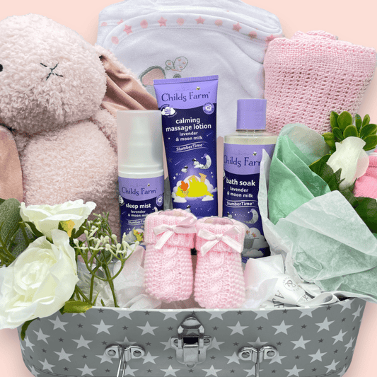 Childs Farm Slumber Time Large Suitcase Hamper with Bouquet (Pink)