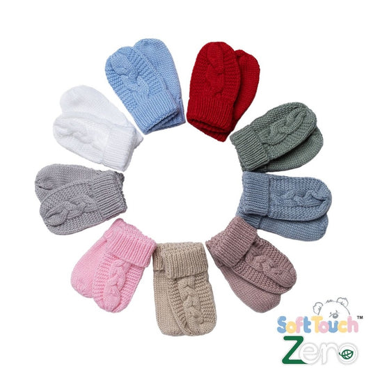 Recycled Biscuit Acrylic Cable Knit Mittens with Turnover Cuffs | Sustainable Baby Mittens