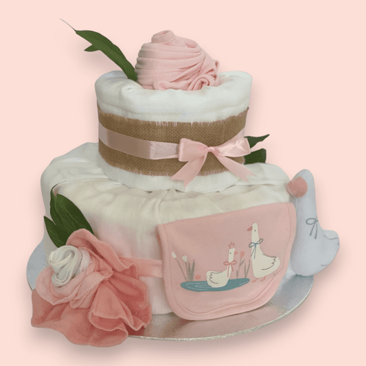 Exquisite 2 Tier Pink “Duck” Nappy Cake – Perfect Newborn Gift