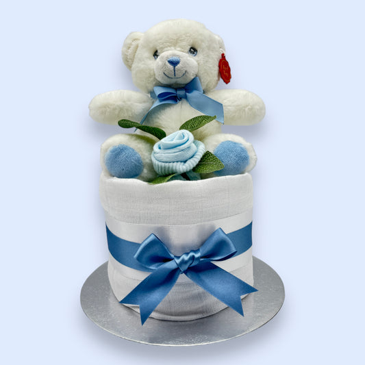 Mini Nappy Cake - Charming Baby Gift with Knitted Booties