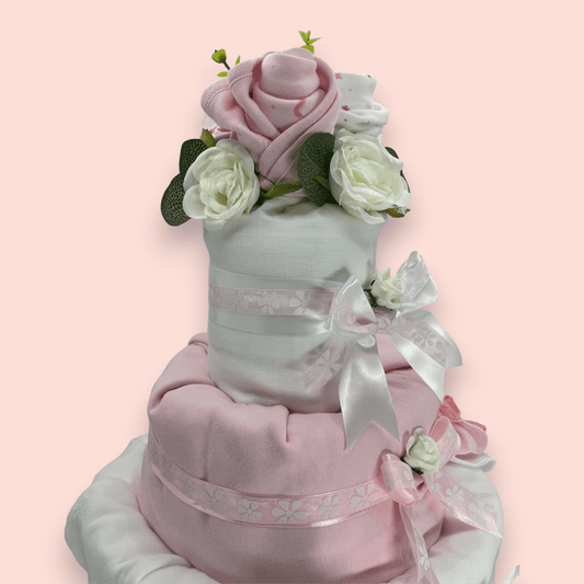 Fairy Dreams: 2-Tier Nappy Cake in Pink and White | Rock-a-Bye Baby Boutique