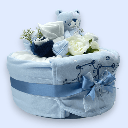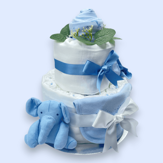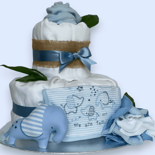 Delightful 2-Tier Blue "Elephant" Nappy Cake – Perfect Gift for New Parents
