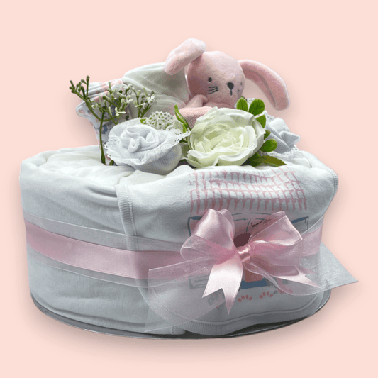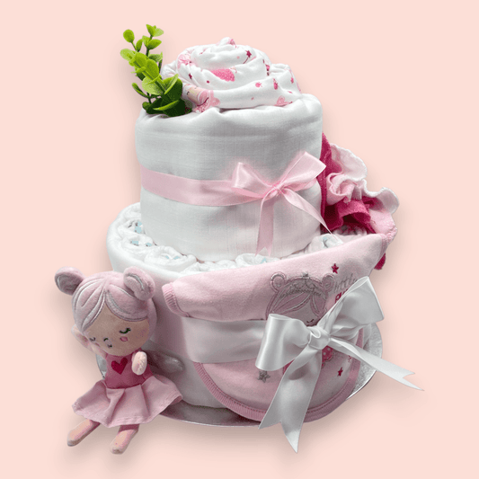 Fairy Dreams: 2-Tier Nappy Cake in Pink and White | Rock-a-Bye Baby Boutique