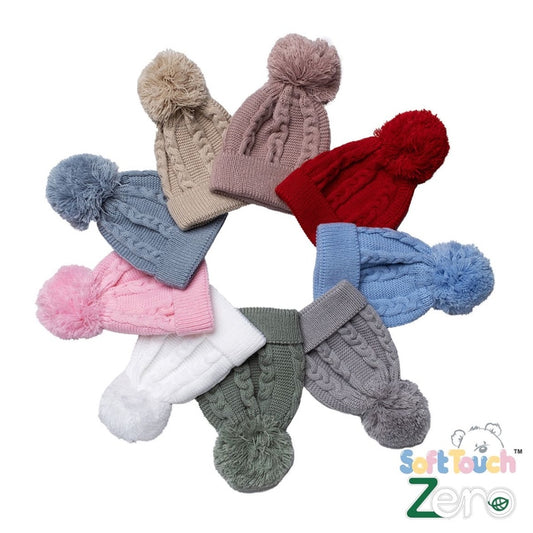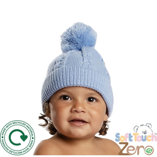 Recycled Acrylic Blue Cable Knit Bobble Hat | Eco-Friendly Baby Winter Hat
