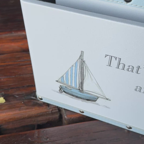 Give your little boy a charming and practical gift with this fabulous set of two faux leather luggage boxes from the Petit Cheri collection by CELEBRATIONS®. Inspired by the beloved nursery rhyme “What Are Little Boys Made Of?”, these vintage-style storage boxes combine rustic charm with functional design — perfect for storing toys, clothes, keepsakes, or as stylish nursery décor.